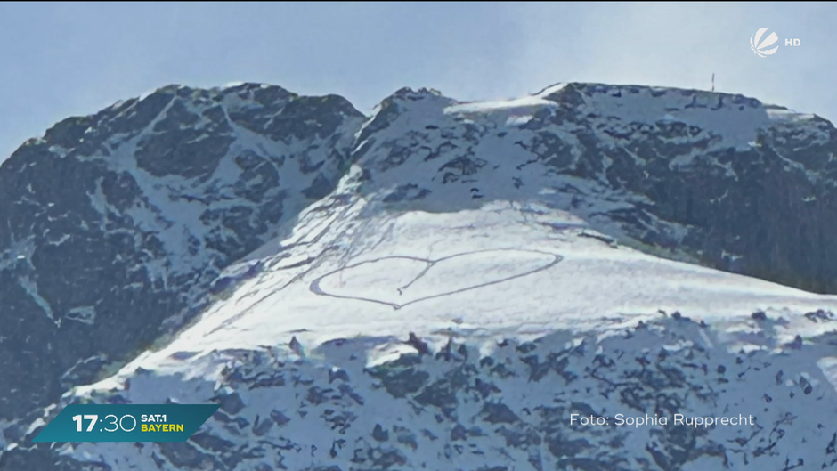 Trotz mehr Sonnenstunden liegt vereinzelnd immer noch Schnee. So auch auf dem Säuling bei Füssen. Dort lässt sich zurzeit ein gigantische Schnee-Herz bewundern, das ein Wanderer für seine Freundin auf fast 2.000 Metern in den Schnee getreten hat.