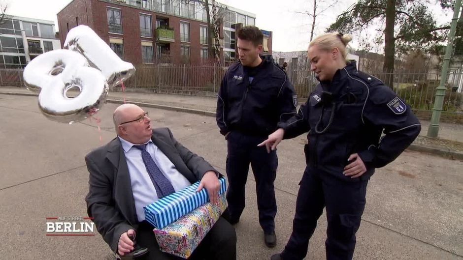Die Beamten sind gerade unterwegs als sie sehen, dass ein älterer Mann mit seinem elektrischen Rollstuhl auf einer Hauptverkehrsstraße unterwegs ist. Neben den Luftballons hat er noch weiteres brisantes Gepäck bei sich.