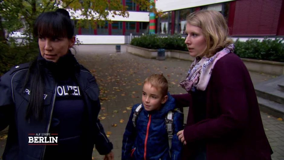 Die Polizisten greifen ein als ein Mann gegenüber eines kleinen Jungen handgreiflich wird.