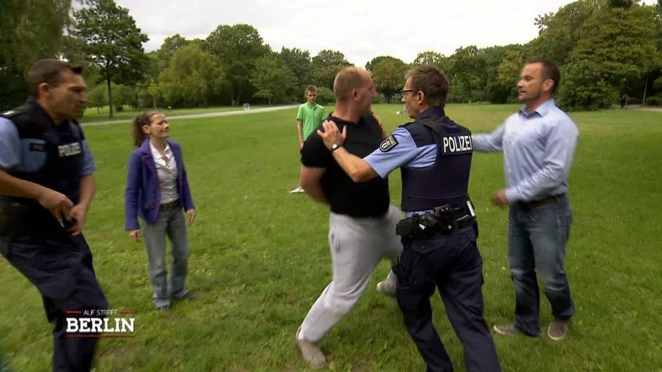 Die Beamten werden in den Park zu Streitigkeiten zwischen zwei Familien gerufen. Noch haben sie keine weiteren Angaben was genau hier vorgefallen ist.