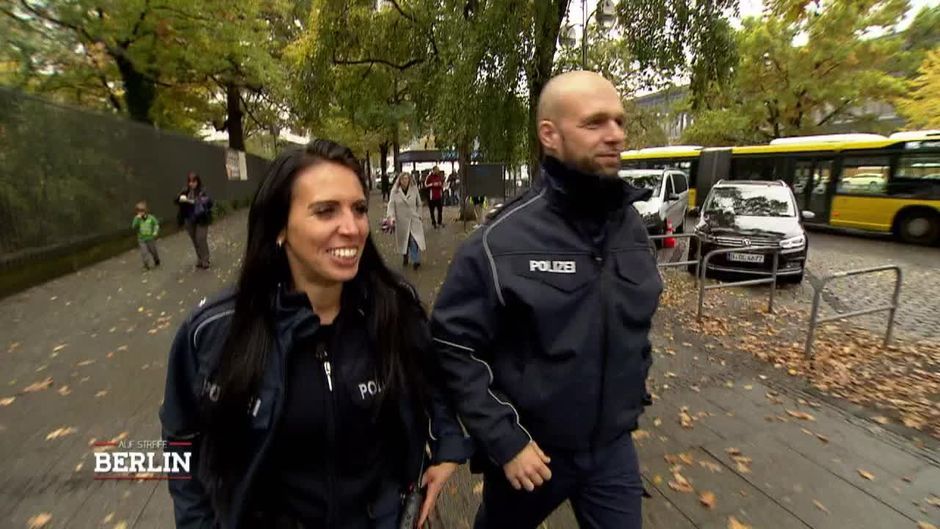 Bei einer Currybude leisten die Beamten einem Gast erste Hilfe.