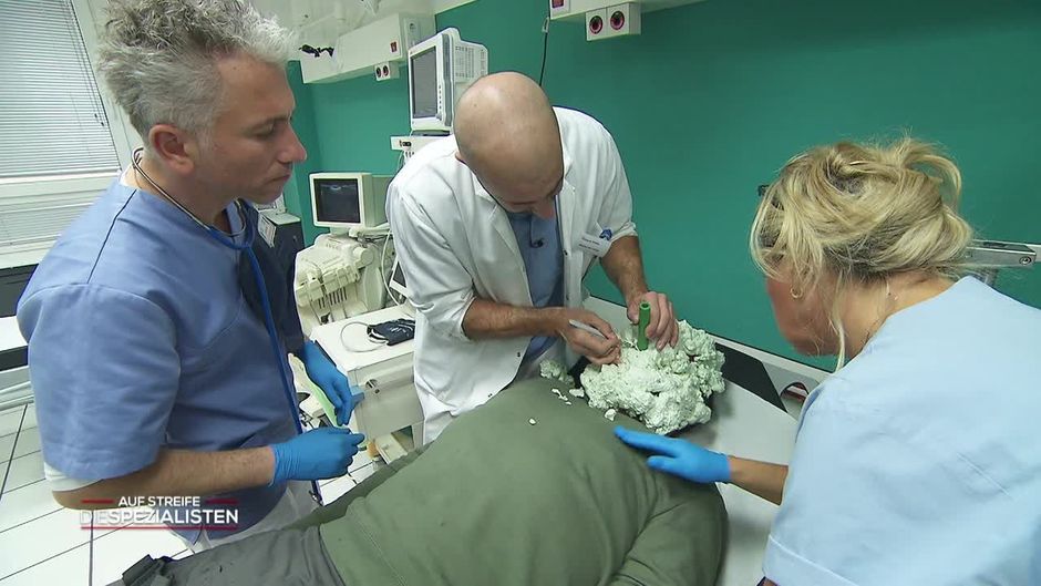 Nach einem Arbeitsunfall ist das Gesicht eines Handwerkers komplett mit Bauschaum bedeckt. Schaffen die Ärzte es, den Schaum zu entfernen, ohne den Mann dabei zu verletzen?