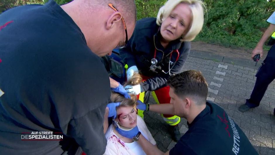 Die Beamten werden zu einem Rastplatz gerufen und finden dort eine Frau vor, die am Kopf verletzt ist.