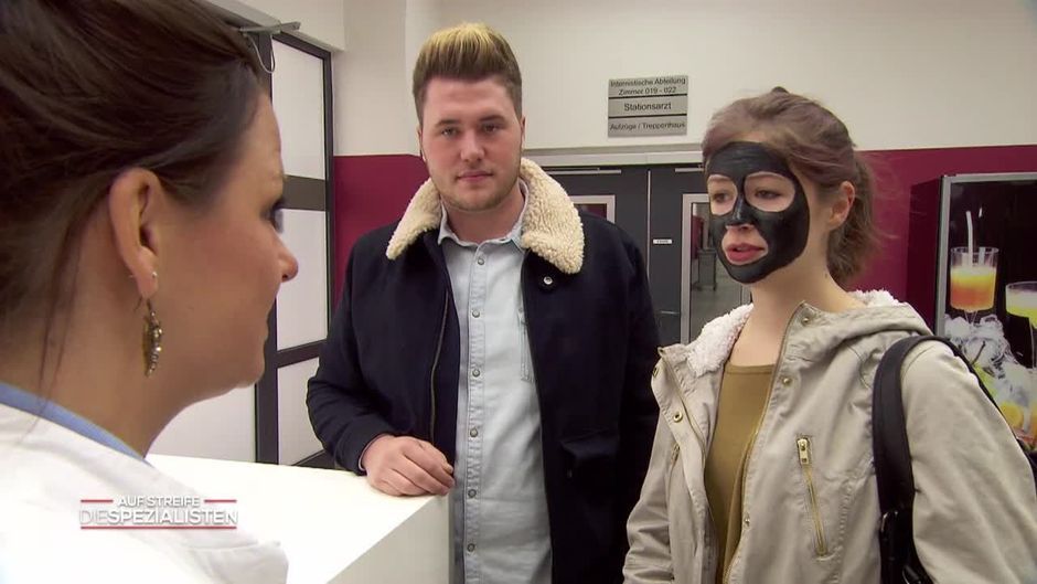 Eine junge Frau hat ein offensichtliches Problem. Eine selbstgemachte Gesichtsmaske lässt sich nicht mehr von ihrem Gesicht entfernen.