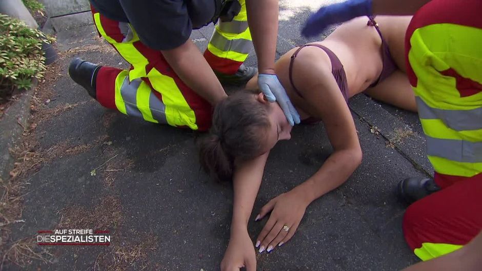 Die Spezialisten fahren gerade im Auto, als sie auf der Straße eine knapp bekleidete, junge Frauen liegen sehen. Was ist mit ihr? Ist sie verletzt?