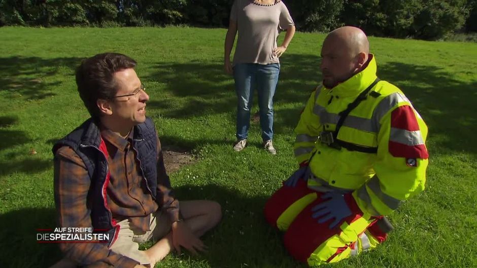 Die Einsatzkräfte werden zu einem Badesee gerufen. Offenbar hat ein Mann einen Herzinfarkt erlitten. Am Ort eingetroffen wundern sich das Team über die Menge an Autobatterien...