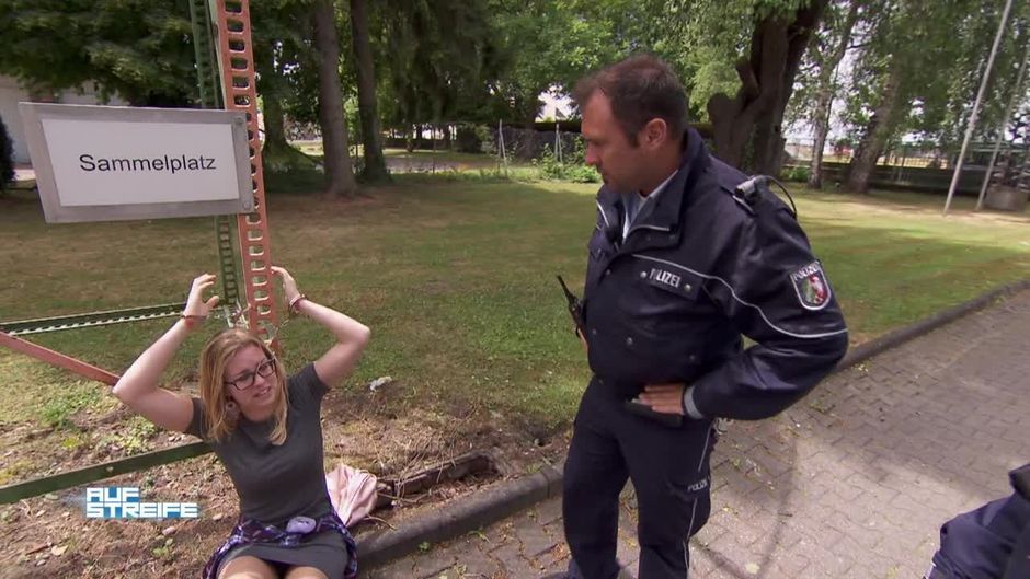 Auf Streife entdecken die Polizisten eine Frau, die mit Handschellen und Kabelbindern an ein Straßenschild gefesselt ist. Ein Zivilpolizist soll dafür verantwortlich sein.