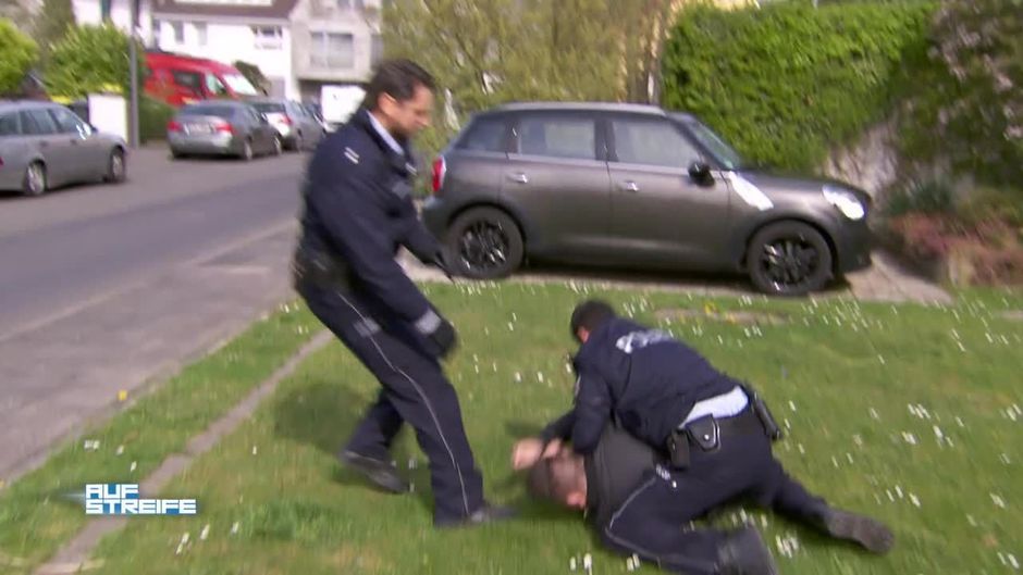 Die Beamten erhalten eine Einbruchmeldung. Als sie vor Ort ankommen, sehen sie, wie einer der Täter gerade die Flucht ergreifen will.