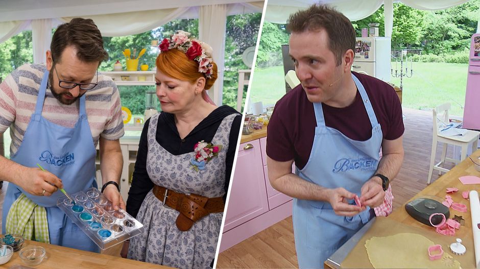 Tupfend und rührend geht es in Richtung Ziellinie. 8 unterschiedliche Tortenstücke sind gefordert. Während Thomas an der Dekoration verzweifelt, ist Theodor hellauf begeistert. Wie schlagen sich die anderen Hobbybäcker:innen von "Das große Backen" 2023?