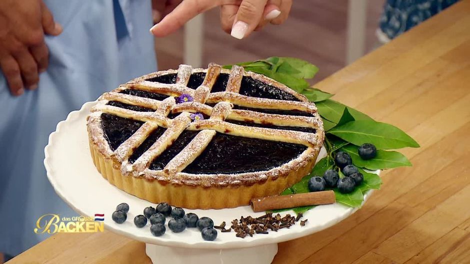 Dirk zaubert ein blaues Wunder aus Hefeteig mit Mandelpudding und einem Heidelbeer-Gewürz-Kompott. Verziert wird der Vlaai mit Gewürzen und echten Blüten. Kann er die Jury damit überzeugen?