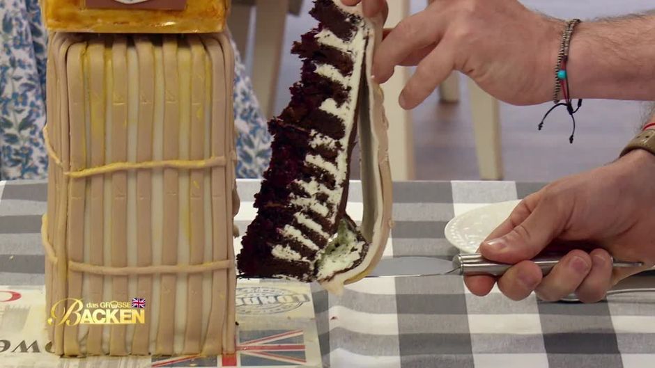 Schokokuchen mit Earl Grey-Aroma, verfeinert mit einer Minz-Buttercreme sowie einem fruchtigen Beerenkompott. Für ein ganz besonderes Aroma sorgt ein Whiskey-Bacon-Crunch. Präsentiert wird das Ganze als Motivtorte im Big Ben-Look.