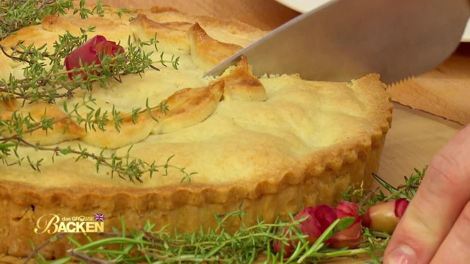 Gebackener Pie mit Sauerkraut, Walnüssen sowie karamellisierten Äpfeln, Bacon und würzigem Cheddarkäse. Dekoriert wird das Ganze mit einem Zweig Thymian. Überzeugt Christoph die Jury mit dieser besonderen Kombination?