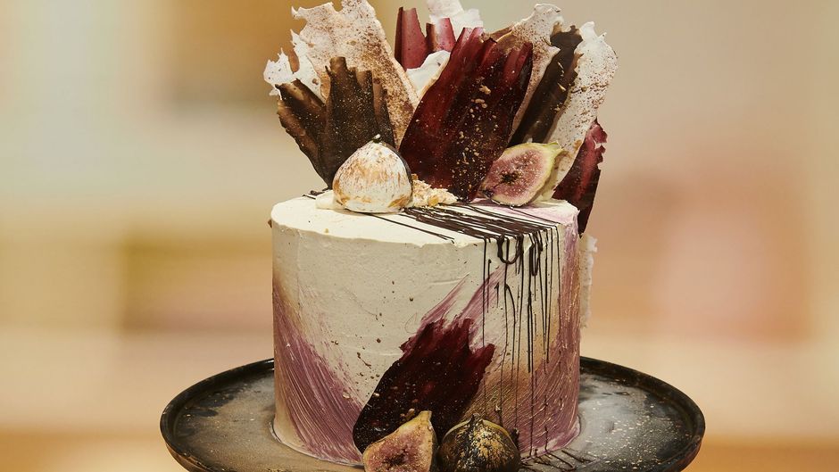 Ein würziger Honig-Chai-Rührteig mit Salzkaramell-Mascarpone-Buttercreme mit Feigenfruchtfüllung, weißer Schokoladen-Buttercreme und Walnuss-Krokant wird bei dieser Prüfung von Susanne präsentiert. Was sagt die Jury dazu?