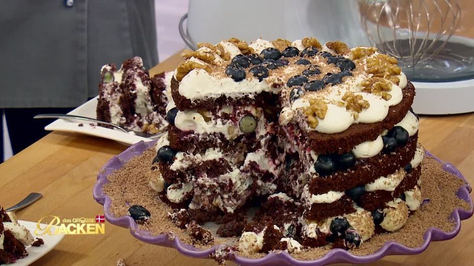 Barbaras Schwarzbrottorte ist etwas ganz Neues. Auf Pumpernickel-Tortenböden verteilt sie eine leichte Mascarpone-Joghurt-Creme. Verfeinert wird das Ganze mit frischen Heidelbeeren und Walnüssen. Wird dieses geschmackliche Experiment gut gehen?