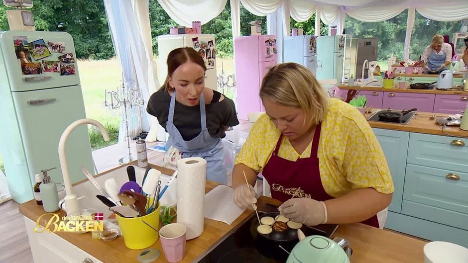 Während Barbara den Dreh raus hat, verzweifeln die anderen an den gefüllten Krapfen. Zum Wenden sollen sie Stäbchen verwenden. Klingt einfach, ist es aber nicht. Und dann wäre da noch die Zeit, die den Hobbybäckern im Nacken sitzt.