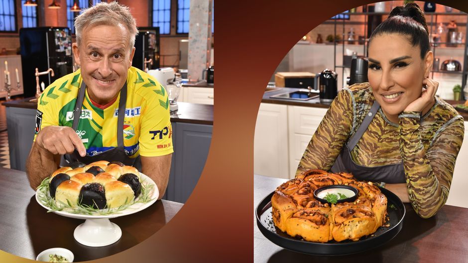 Das Herz von Promi-Hobbybäcker Pierre Littbarski schlägt für den Fußball - und das erkennt man auch an seinen Backkreationen! Sein herzhaftes Pull-Apart-Brot wird mithilfe von gefärbten Teigkugeln zum Ball. Aber teilt die Jury diese Leidenschaft?