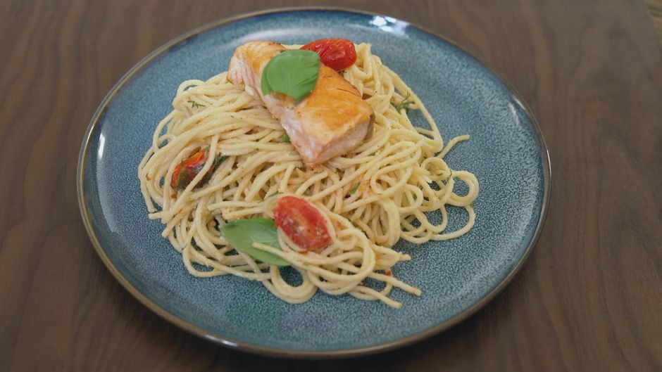 Olga und Mila finden ihre Inspiration in der mediterranen Küche und kochen Spaghetti mit Lachs. Für den herrlich frischen Geschmack darf ein wenig Zitronenschale nicht fehlen.