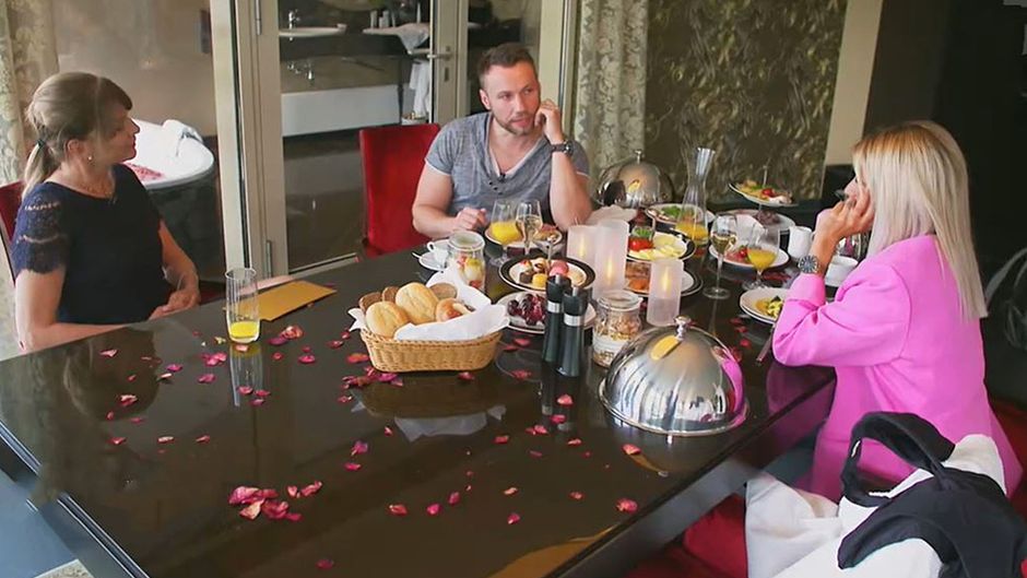 Das Frühstück am ersten gemeinsamen Morgen kommt nicht allein, denn Expertin Beate Quinn stattet Yasemin und Jochen einen Besuch ab. Sie will sich einen Eindruck über über erste Annäherungen machen und verrät ihnen zudem das Reiseziel ihrer Flitterwochen.