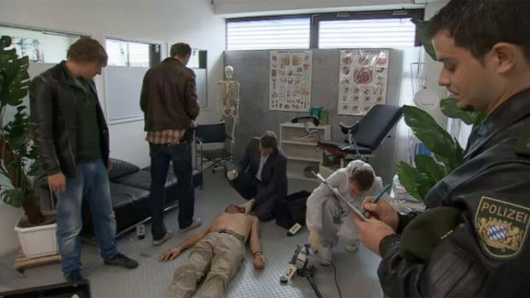 Eine Porno-Darstellerin findet die Leiche des Porno-Produzenten Peter.