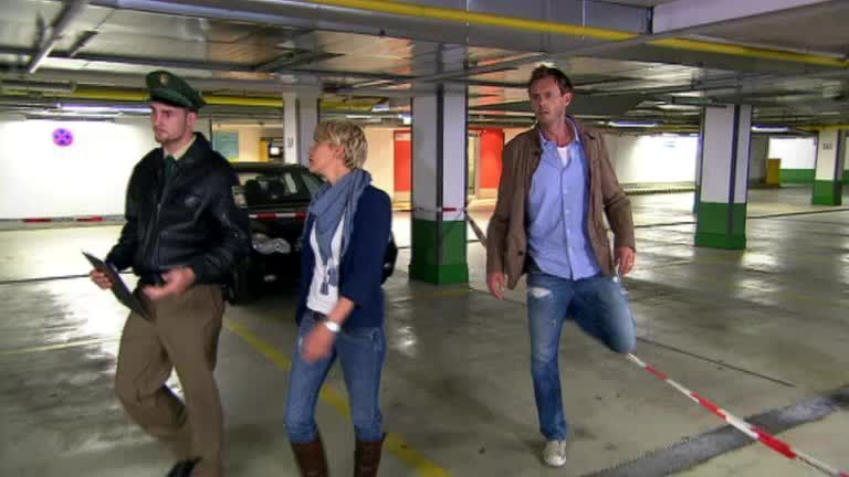 Die Ermittler stoßen auf die Leiche von Karin Gehle, sie ist wohl absichtlich mit dem PKW überfahren worden.