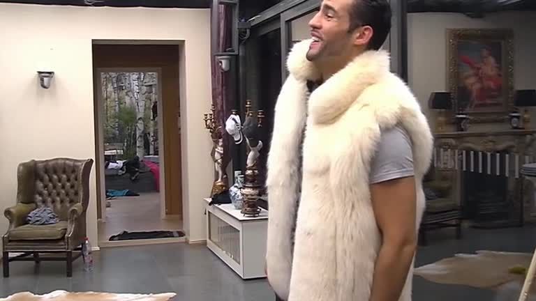 Manuel probiert Georginas Pelzweste an und fühlt sich sichtlich wohl in seiner Haut..äh..Pelz