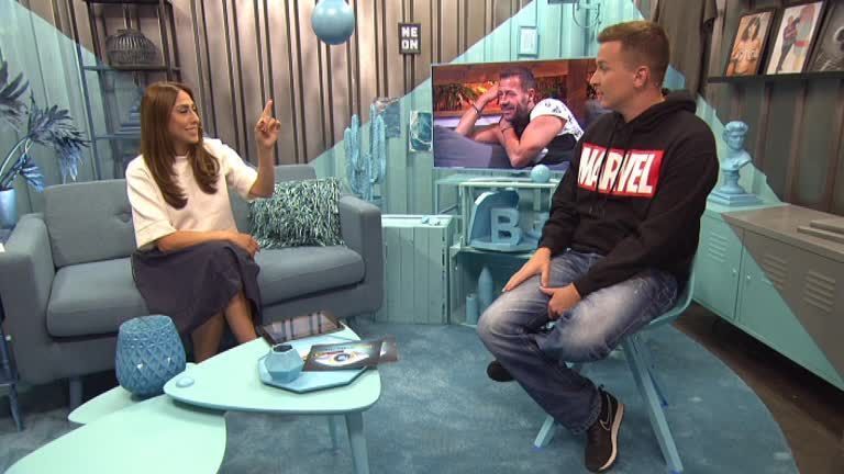"Promi Big Brother" 2024: Der große Bruder bittet seine Bewohner:innen zur Knutsch-Challenge.