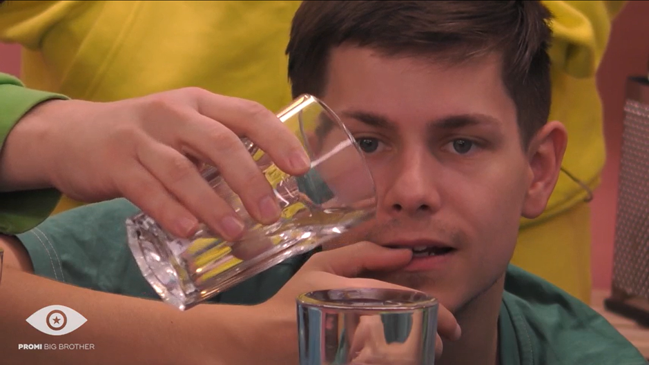 Ein neuer Tag, ein neuer Zeitvertreib! Heute spielen unsere Promis das Spiel: Wer bringt das Wasser zum Überlaufen? Dafür schütten sie nacheinander immer wieder Wasser in ein Glas. Wer es zum Überlaufen bringt, verliert!