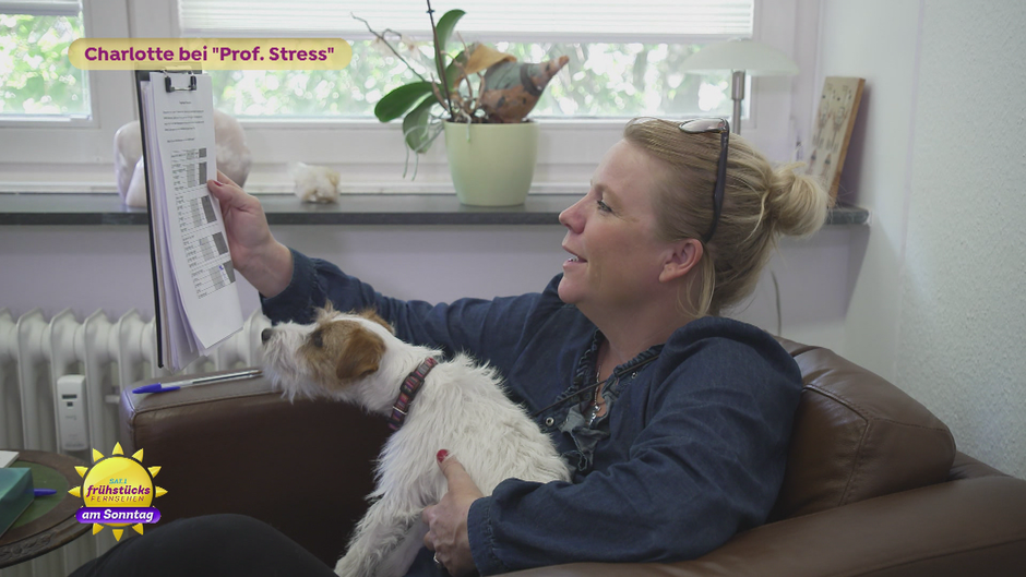 SAT.1-Frühstücksfernsehen am Sonntag: Charlotte Karlinder bei "Prof. Stress"