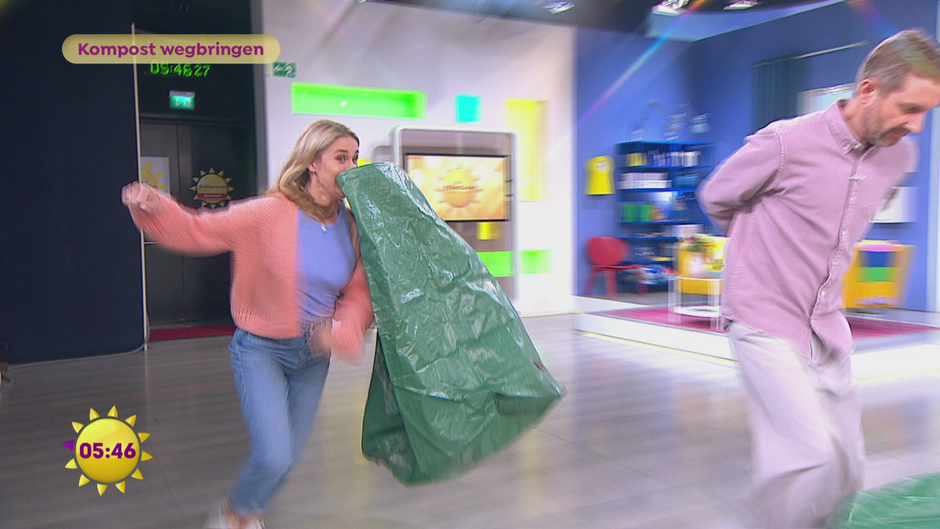 Show-Experte Lukas Haunerland kommt den Wunsch der Moderator:innen nach, mehr Action in die Sendung zu bringen. Bitte sehr! Das ist die Aufgabe: "Bringt den Kompost weg, aber ohne die Hände zu benutzen!" Wer hat die bessere Taktik? Alina oder Boschi?