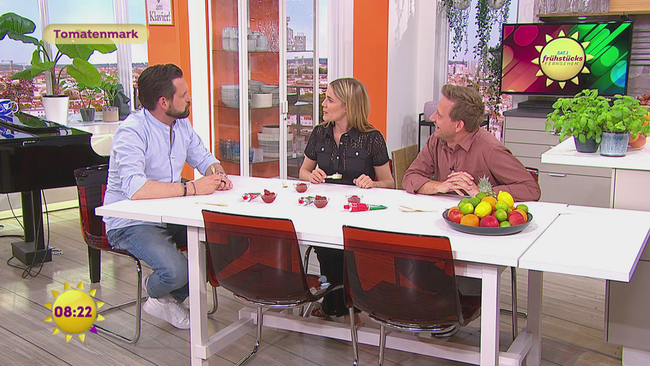 Tomatenmark: Braucht man es oder nicht? Selbst Spitzenköche verkochen es in ihren Gerichten. Neu gibt es Tomatenmark mit Geschmack. Ob Basilikum, Chili oder Knoblauch – können Alina und Matthias den Geschmack erraten?