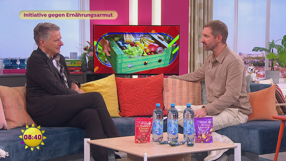 In Deutschland steigt die Ernährungsarmut. SAT.1, dm, REWE und Jörg Pilawa haben eine Initiative mit Produkten der Marke "share" ins Leben gerufen, deren Verkauf der Tafel zugutekommt. Jörg Pilawa spricht auch über die allgemeine Lebensmittel-Problematik.