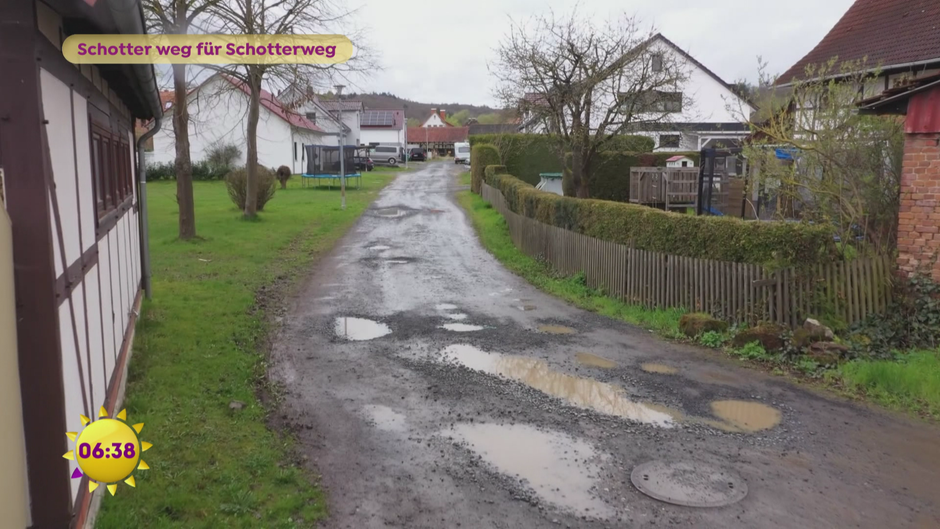 Der Weg zu den Häusern ist ein holpriges Abenteuer. Seit Jahren sollen diese Straßen saniert werden – vom Geld der Anwohner. Passiert ist allerdings nichts. Trotz Erschließungskosten werden die maroden Straßen nicht fertiggestellt.