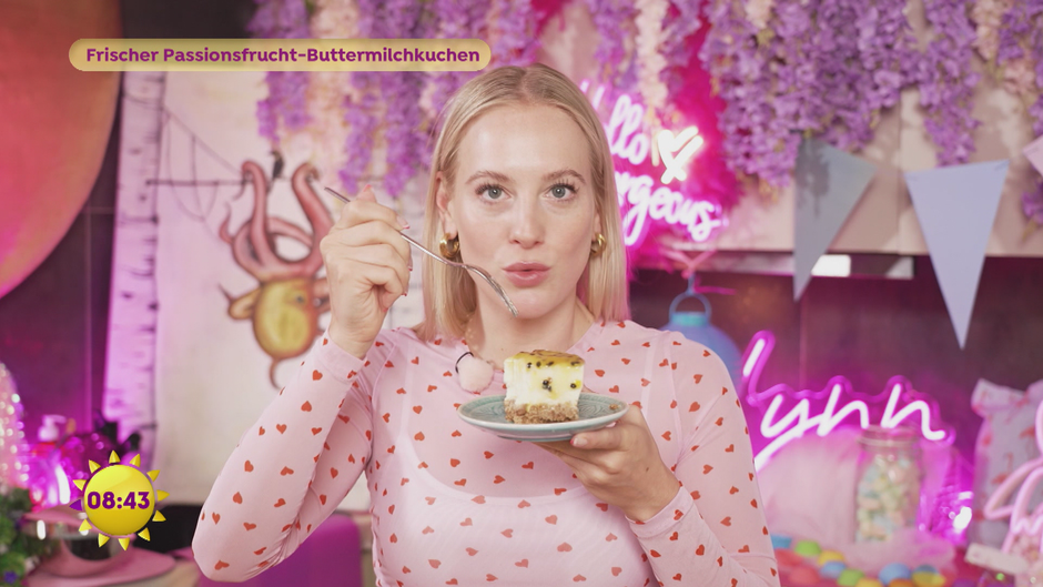 Süß, sauer, lecker! Backfee Lynn backt einen einfachen Cheesecake mit Passionsfrucht, Vollkorn-Knusper-Boden und Buttermilch.