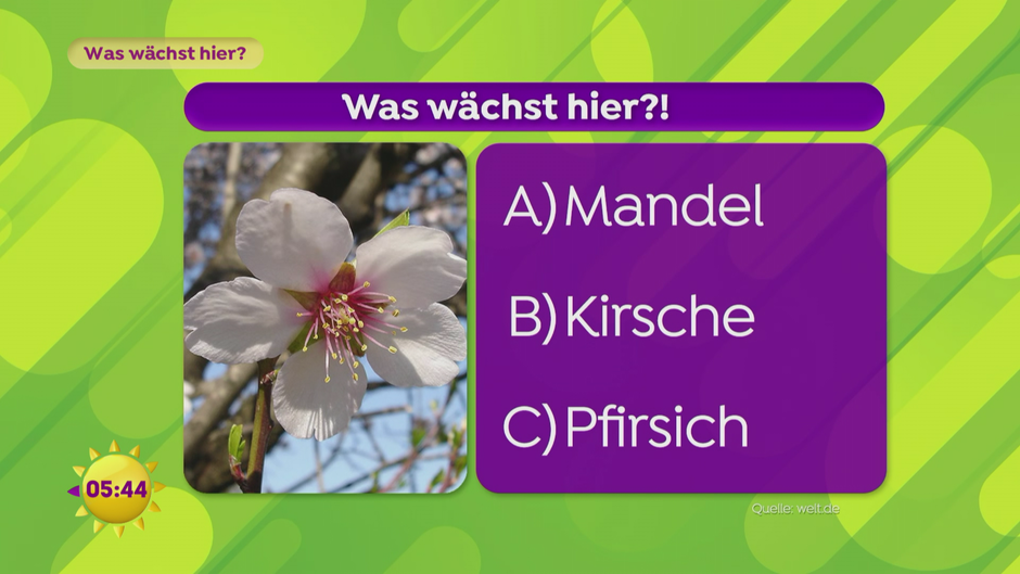 Mandel-Kirsch oder Pfirsichblüte? Show-Experte Lukas Haunerland hat Pflanzenbilder mitgebracht. Aber was wird hier gezeigt? Ratet gerne mit!