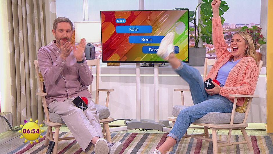 Die Zuschauerfrage war: "Was ist bei euch in der Region der Städte-Dreiklang?" Show-Experte Lukas Haunerland gibt die erste Stadt vor, Alina und Boschi müssen die beiden nachfolgenden Städte buzzern. Raten sie mit!