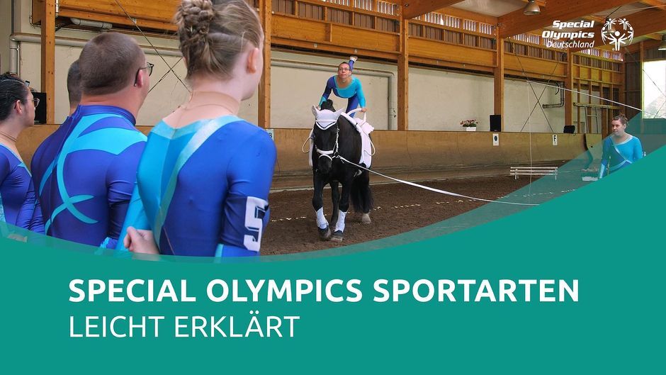 Voltigieren ist ein Pferdesport. Beim Voltigieren turnt man auf einem Pferd. Im Video wird die Sportart Voltigieren in Leichter Sprache erklärt.