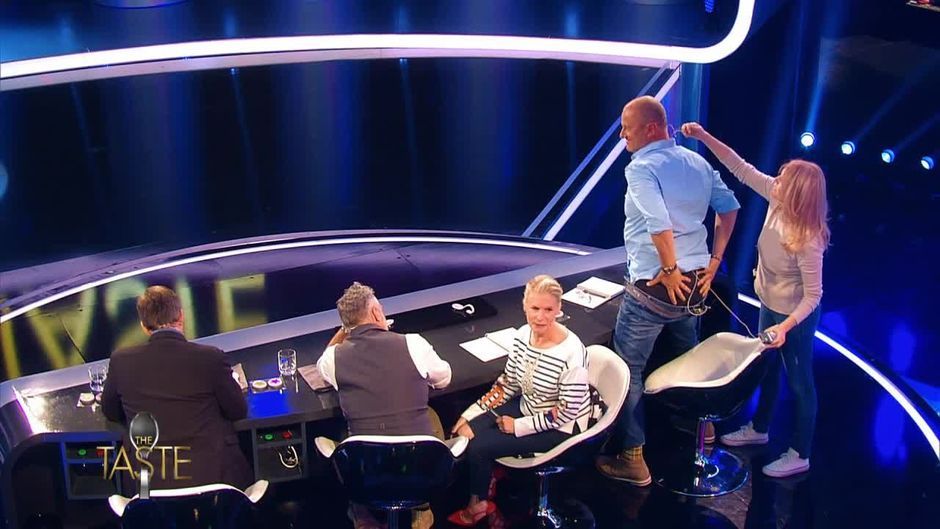 Cornelia traut ihren Augen nicht: Frank nutzt die Gelegenheit der Technikpanne und präsentiert den Kandidaten auf der Empore seinen Allerwertesten.