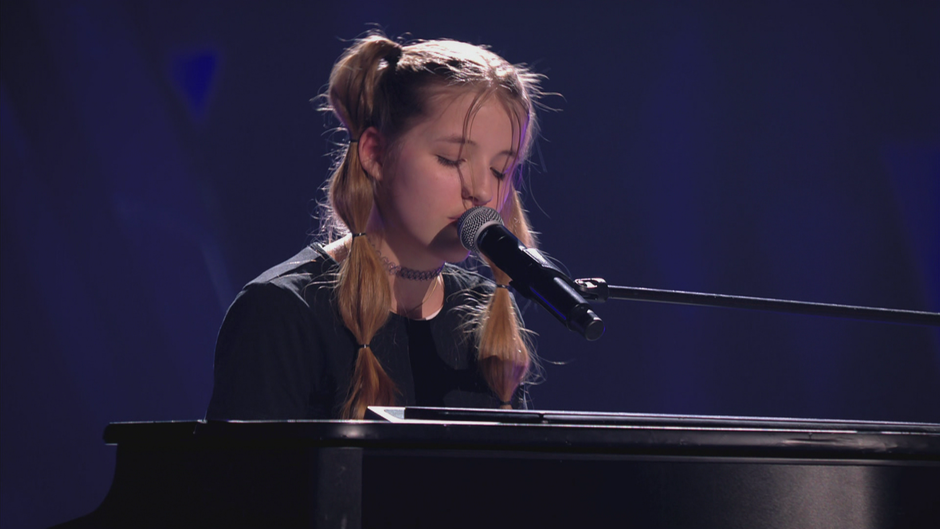 Rosalie hat schon eine eigene Ballade geschrieben. Sie singt den emotionalen Song, der noch keinen Titel hat, und begleitet sich selbst auf dem Klavier. Das ganze Publikum ist gerührt - im Studio bei "The Voice Kids" 2024 herrscht unglaubliche Stimmung!